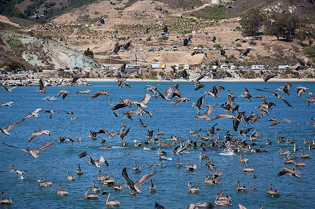 We went to Port San Luis to see the whales. This year there are lots of fish which brought in the whales. I have never ever seen whales at Port or Avila and there they were. We saw so many creatures that day, whales, dolphins, seals, sea lions, seagulls, and pelicans. Its was like being at the zoo but so much better. The sea lions and pelicans were going nuts it was awesome to watch and we spent a lot of time out there.